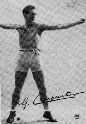 Above: Joseph Charlemont was one of the first to establish Savate into a formal system and had publish the first book on Boxe Franciase Savate. Joseph Charlemont had a son in 1877 named Charles Charlemont who would carry on the the tradition and have just as much impact on the development of Savate popularity. Charles Charlemont a practitioner of Savate at the age of ten would go to master Savate techniques by his early twenties. He brought recognition to Savate when he beat English boxing champion Jerry Driscoll in 1899. A debate with public had been discussed and brewing for some time on the subject of whom would be a greater successor in a match between an English Boxer and a Savate Professior. News papers and head figures witness the outcome as Charlemont punished Driscolls body with a series of powerful kicks, that disabled Driscoll to continue the bout. Charles Charlemont years following would successfully teach Savate and have famous students such as Georges Carpentier a champion of France in 1907. Carpentier turned world title holder in English Boxing would later fight against champions like Jack Dempsey in1921. Below left: Charles Charlemont son of Joseph executing a Foutte Figure (kick to the head) at an opponent. Middle: The great fight between Charlemont and Driscoll, news papers cover the event as charlemont won with kicking stratigies. Far right: The late George Carpentier a world champion boxer also known as a Savate practitioner under Charlemont.